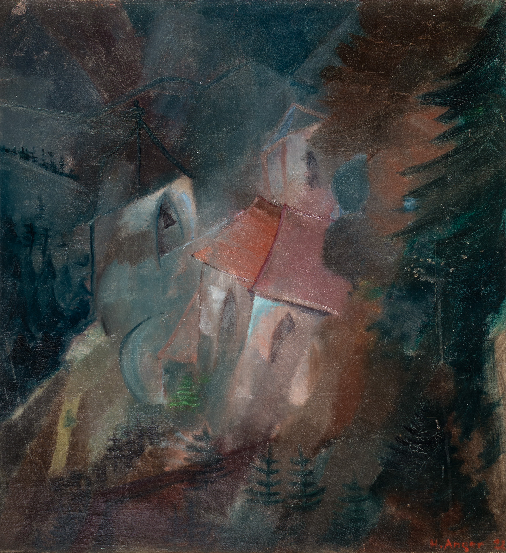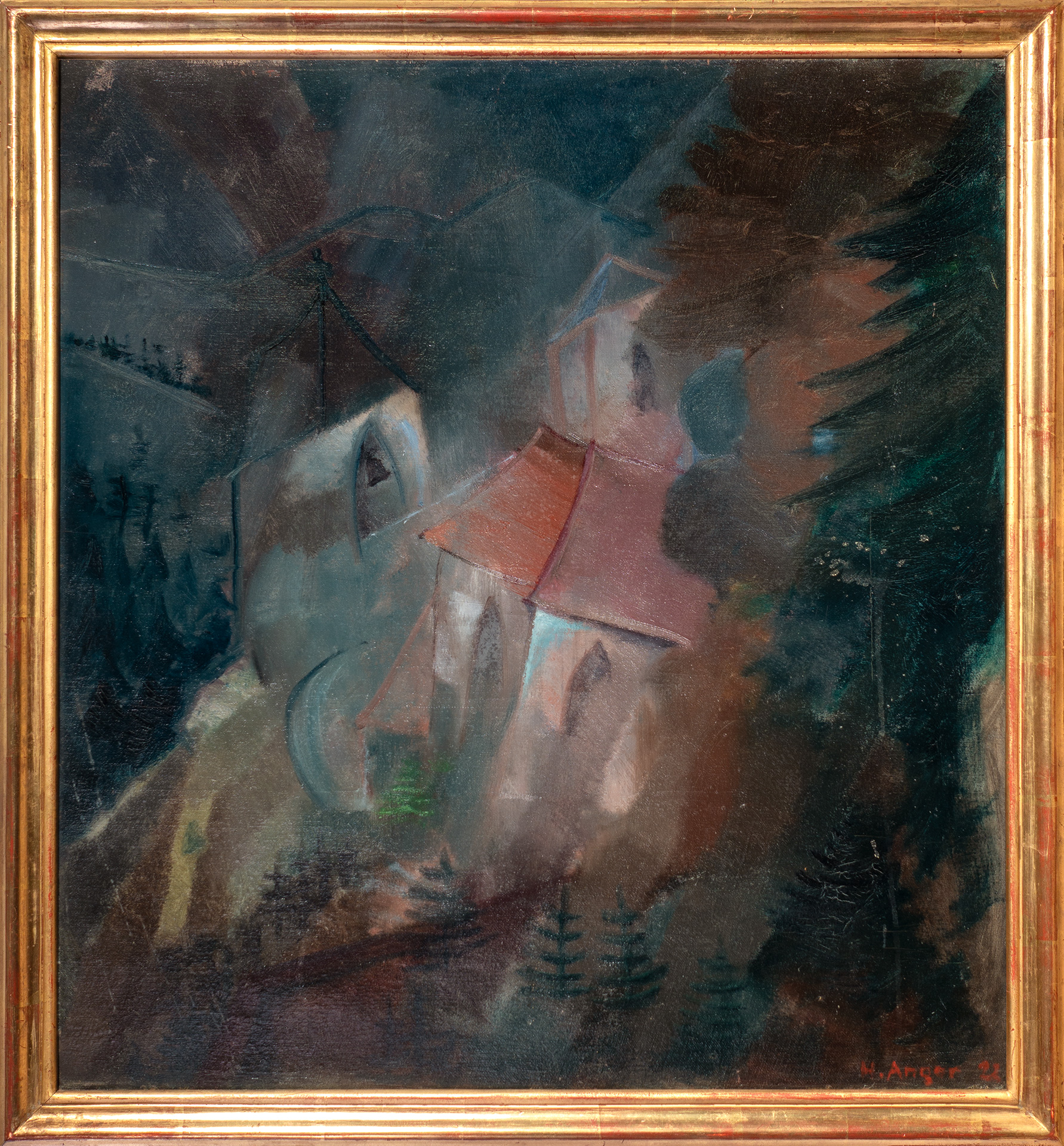 Das Werk besticht durch die sehr expressive, dynamische Komposition. Nebst seiner eindrücklichen Gesamtwirkung weist das Gemälde zahlreiche lyrische Details auf: Von dem breiten Repertoire an Tannen-Darstellungen (inklusive den «Klee/Bauhaus»-Tannen im Vordergrund) über die musikalisch-schwingende Glocke im Mittelgrund bis zu der malerischen Verschmelzung von Häusern, Bergen und Himmel… Waltraut Neuerburg erwähnt in der Publikation «Der Graphische Zyklus im deutschen Expressionismus und seine Typen 1905-1925» (Neuerburg, 1976) auf Seite 290 den Holzschnittzyklus «Kirche und Häuser» (1920) von Herbert Anger. Allenfalls steht das Gemälde mit dieser Grafikfolge im Zusammenhang.