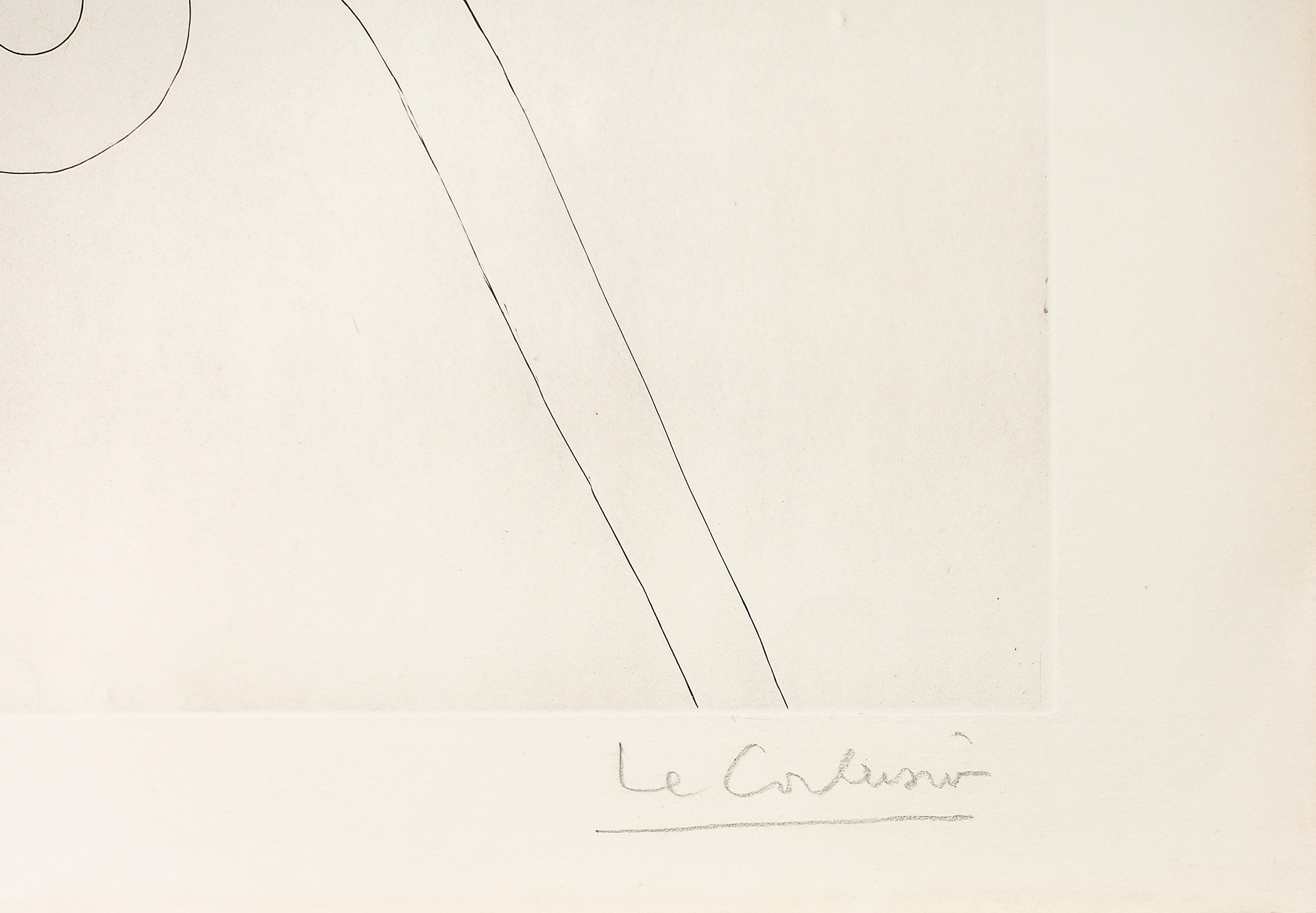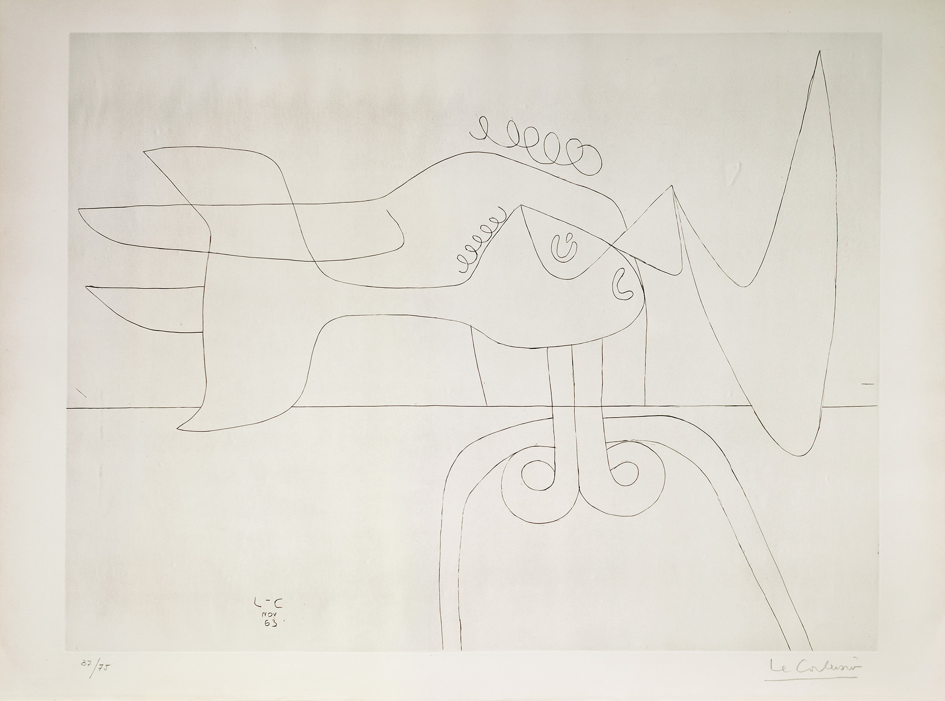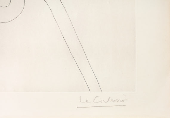 Bei einem ihrer Treffen mit Le Corbusier in Paris brachte die langjährige Galeristin Le Corbusiers, Heidi Weber, vier Kupferplatten mit sich: «Ich weiss, dass Sie Graveur in der Uhrenindustrie gelernt haben und möchte, dass Sie mit ihnen arbeiten, Monsieur.» Corbusier war zuerst erstaunt, dann lächelte er: «Ja, gerne, ich mache Ihnen diese Platten.» Und so entstand unter seiner Hand das vorliegende, sehr seltene und grossformatige Blatt «La mer».
