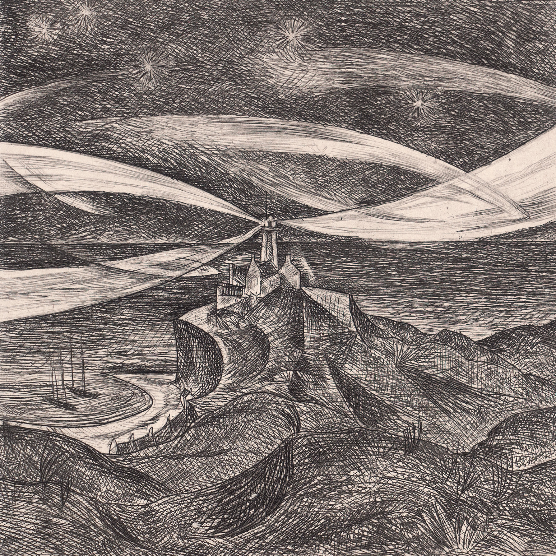 Das Gemälde «Leuchtturm mit rotierenden Strahlen» (1913) ist eines der bekanntesten Bilder von Paul Adolf Seehaus. Die vorliegende Druckgrafik besticht mit dem gleichen Motiv und gehört zu den gesuchtesten Werken des Künstlers. In einem Artikel der Frankfurter Zeitung zur Ausstellung «Rheinische Expressionisten» (Bonn, 1913) wird Seehaus als «die eigentliche Überraschung der Ausstellung, der als echtestes Malerblut unbedingt grosse Erwartungen weckt» bezeichnet. Das kleine Bild «Leuchtturm mit rotierenden Strahlen» wurde erstmals 1914 von Alfred Flechtheim ausgestellt, 1919 gab er es als Leihgabe an das damalige Bonner Stadtmuseum in der Villa Obernier, 1932 in eine Ausstellung im Kronprinzenpalais in Berlin. Danach wurde es «entartet» und schliesslich 1949 vom Bonner Kunstmuseum aus unklarem Besitz ersteigert. Im Jahr 2012 entschädigte das Museum die Erben Flechtheims.