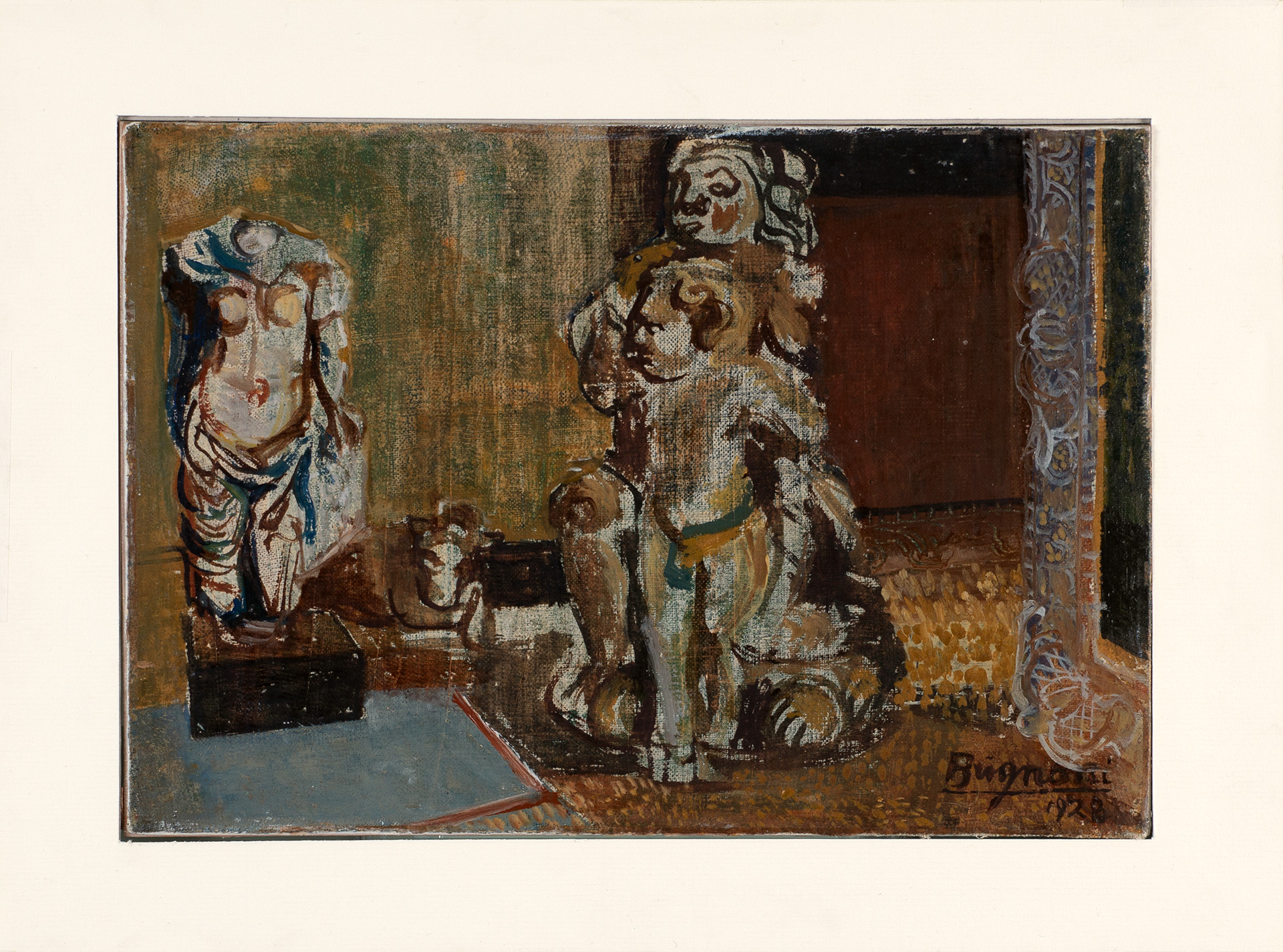 Nach Studien in der Berner Malschule von Victor Surbek und in Bern wechselte Serge Brignoni 1923 in die damalige Welthauptstadt der Kunst, nach Paris. Dort entstanden Werke im Umfeld der damaligen Avantgarde: Mit Alberto Giacometti teilte er die Wohnung, mit Joan Mirò stellte er 1926 gemeinsam aus. Noch vor Giacometti sammelte Brignoni antike Skulpturen und aussereuropäische Objekte, welche er in seinen frühen Gemälde verarbeitete. Angeleht an die metaphysische Malerei Giorgio de Chiricos ist dieser neue Duktus auch in dem vorliegenden Werk zu erkennen. Die bekannte Galeristin Jean Bücher widmete Brignoni mehrere Ausstellungen, «weil sie ihn 1926 am Salon des Independants entdeckt und in ihr Notizbuch eingetragen habe: Comme de Chirico, Mais plus coloré».