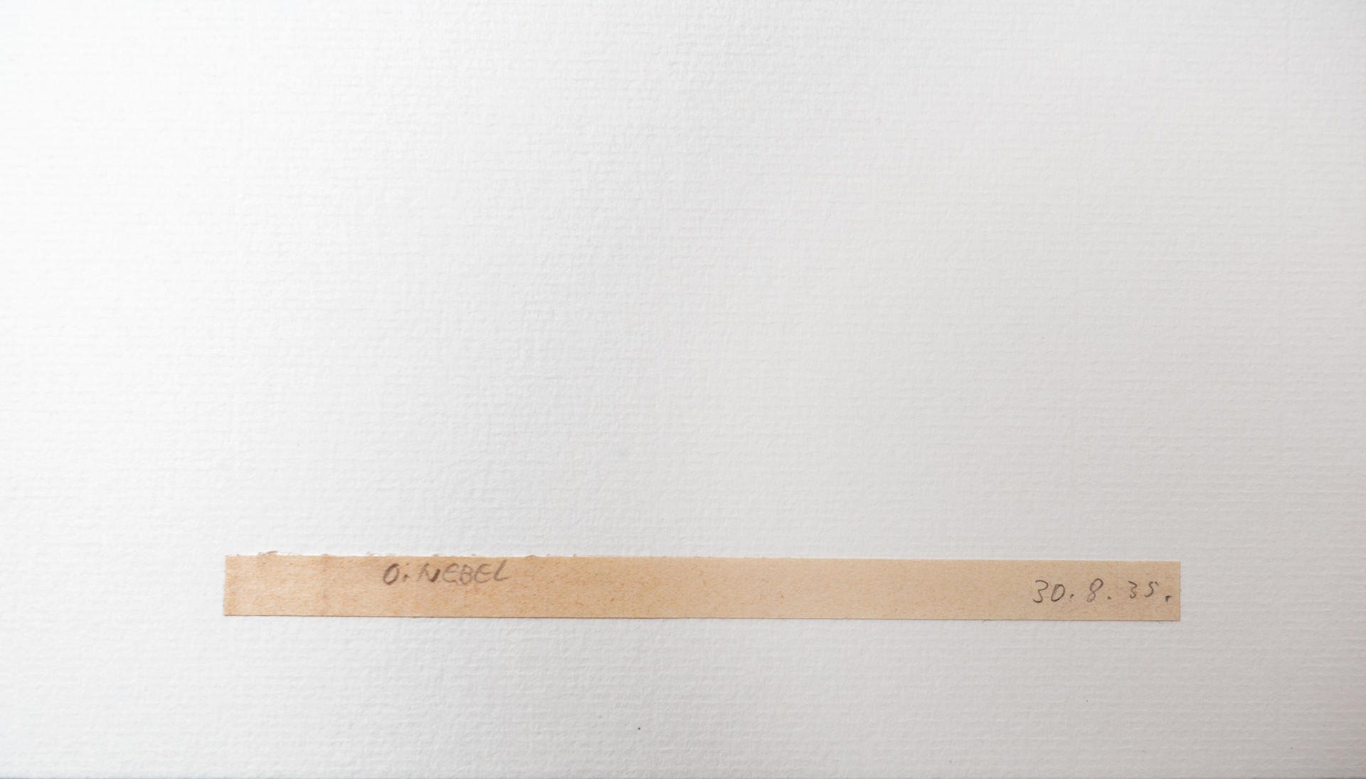 Eine der sehr reizvollen, lyrischen Arbeiten aus dem Frühwerk des bedeutenden Künstlers. – Von grosser Seltenheit. Von 1924–25 hielt sich der gebürtige Deutsche am Bauhaus in Weimar auf und etablierte eine enge Freundschaft mit Wassily Kandinsky, Paul Klee, Gertrud Grunow und Georg Muche. 1933 emigrierte Nebel schliesslich in die Schweiz, zunächst liess er sich in Muntelier, danach in Bern nieder. 1935 erhielt Otto Nebel das Bürgerrecht von Bern und die Schweizerische Staatsbürgerschaft.