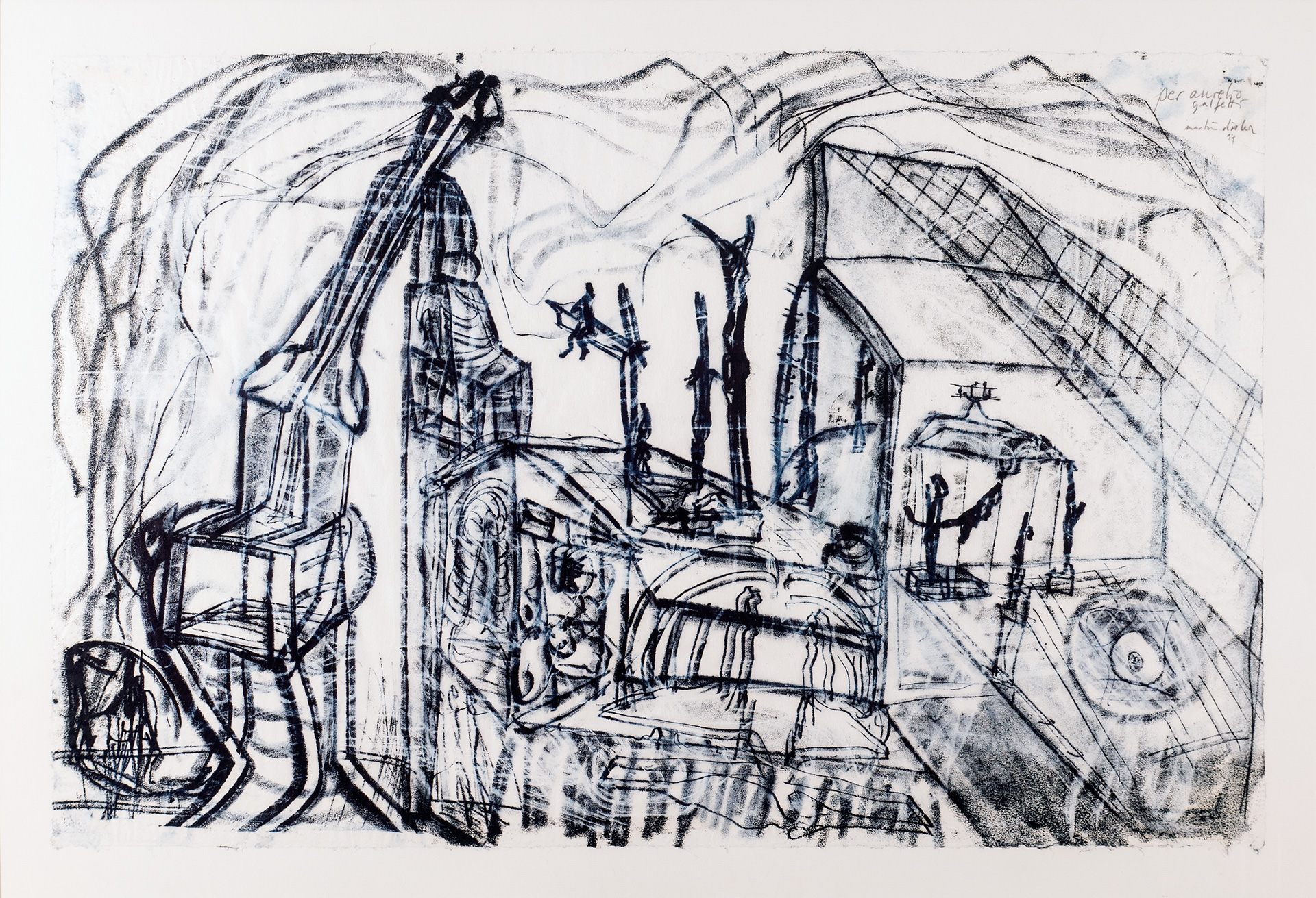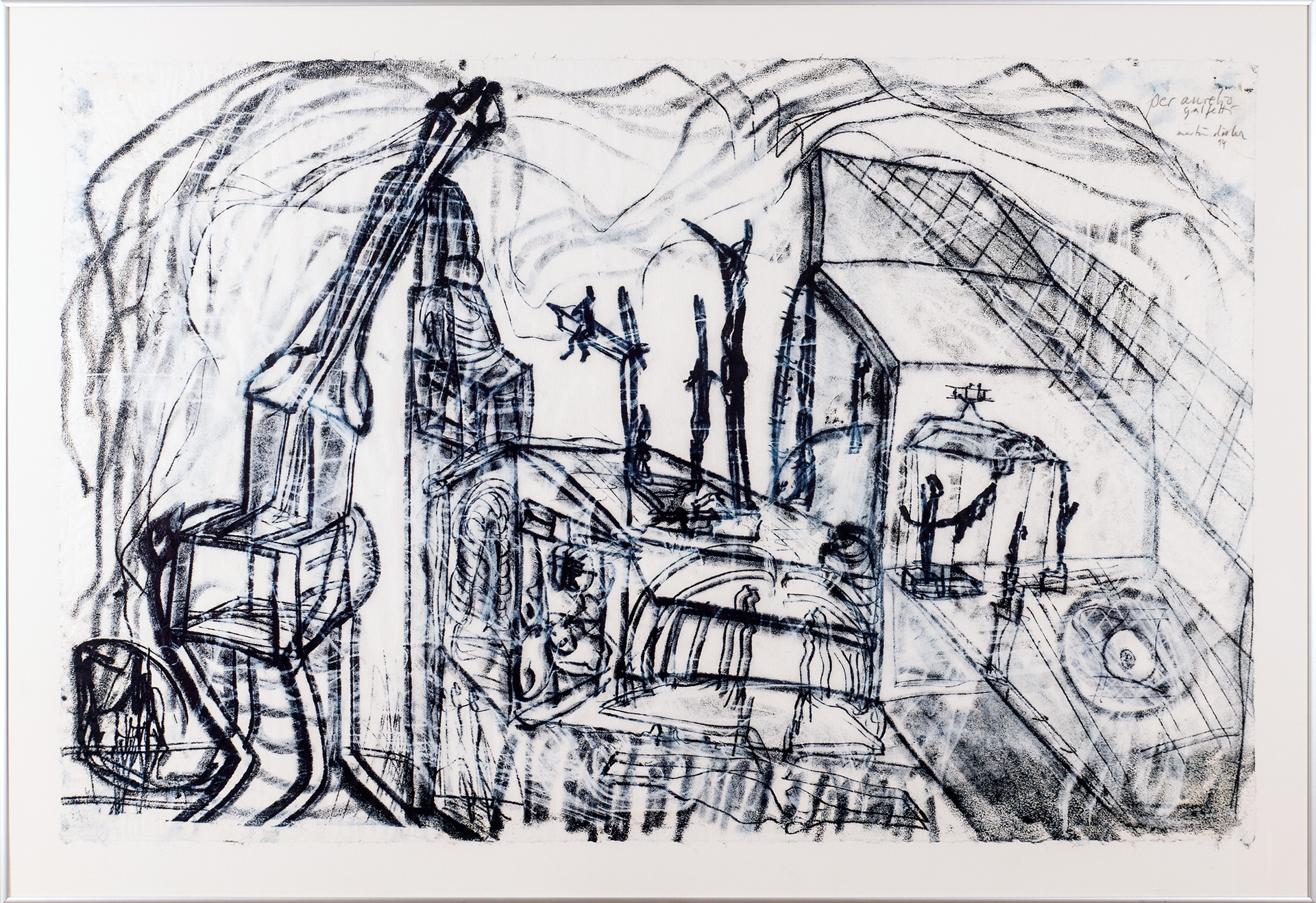 Grossformatiges, einnehmendes Werk; mit Widmung an den Architekten und Ausstellungsmacher Aurelio Galfetti,
