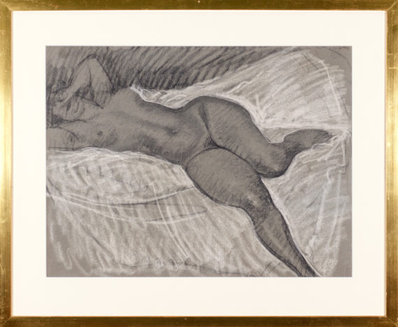 Bei der vorliegenden Zeichnung handelt es sich um eine gemäldehafte Vorarbeit für das bedeutende, vielgezeigte Gemälde «Petit nu sur un Lit», welche zur Dauerausstellung des Louvre gehörte und heute im Musée d’Orsay (INV. RF 1970 12) präsentiert wird. Steinlens Werke finden sich generell in bedeutenden Sammlungen wie dem Hermitage Museum in St. Petersburg, dem Musée d’Orsay in Paris, dem Museum of Modern Art in New York, und der National Gallery of Art in Washington, D.C.. Das Musée d’Orsay in Paris beispielsweise zeigt in der Dauerausstellung mit «Nu féminin, couché, de dos» ein in der Technik und dem Sujet sehr vergleichbares Werk und dem Gemälde «Petit nu sur un Lit» diente die vorliegende Arbeit als Vorstudie.