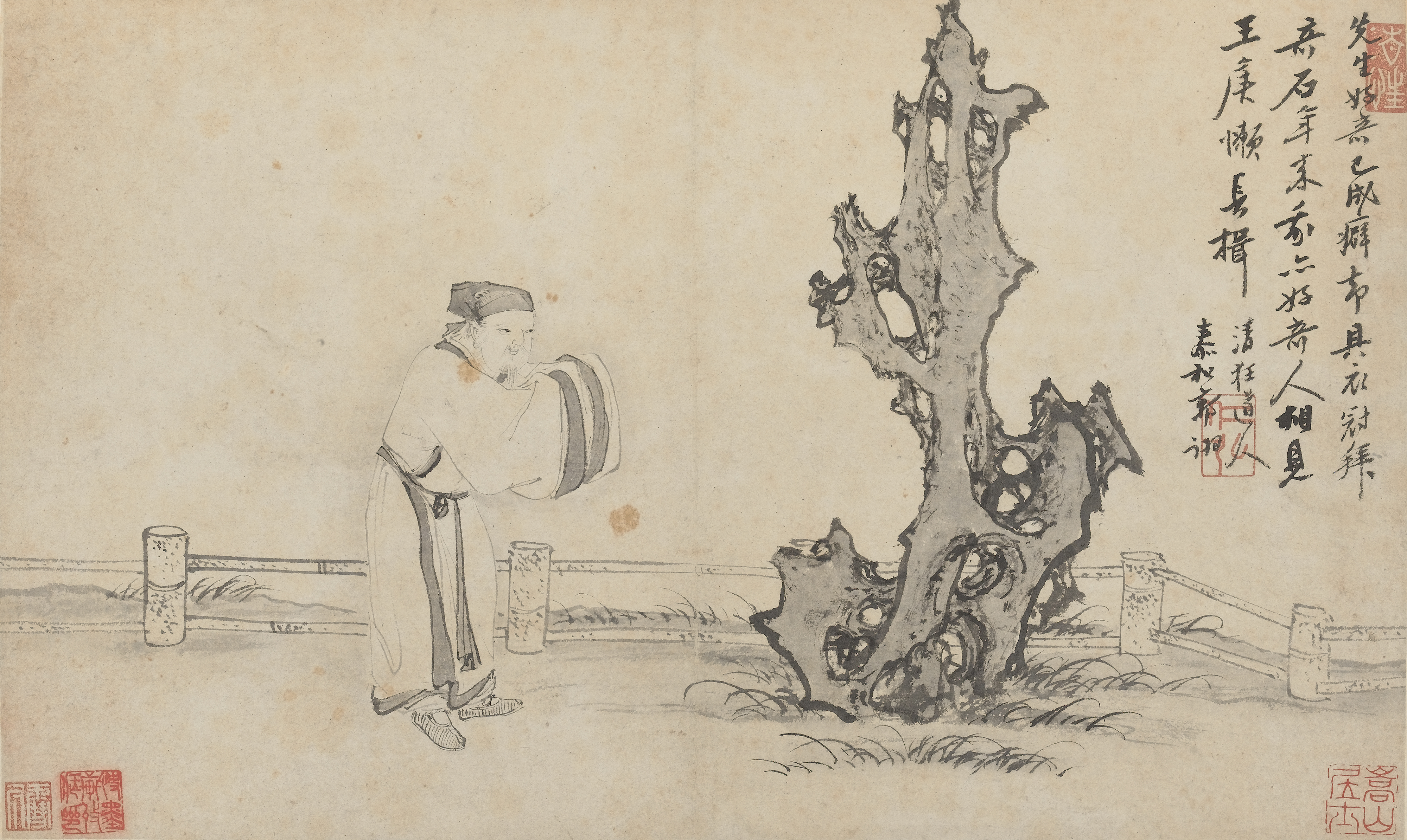 Die traditionelle chinesische Philosophie erachtet Mensch und Natur als egalitäre Bestandteile des Universums. Der Mensch nimmt dabei weder eine zufällige noch eine aussergewöhnliche Rolle ein. Einen Weg, sich dieser Gleichzeitigkeit von Mensch und Natur bewusst zu werden, bieten die «Scholar Rocks». Ähnlich wie westliche «Ready Mades» werden die Gegenstände in ihren ursprünglichen Zuständen belassen. Ohne den «westlichen» Weg von der gegenständlichen über die abstrakte bis hin zur ungegenständlichen Kunst zu nehmen, sollen nach chinesischer Auffassung diese oft gesockelten oder gerahmten natürlichen «Readymades» den Weg zum Formlosen aufzeigen: Mit der ausschliesslichen Konzentration auf einen einzigen Gegenstand soll kontemplative Einsicht in die wahre Natur der Phänomene gewonnen werden. Jede Sinnesaktivität soll bei intensiver Betrachtung eingestellt werden; der Weg führt dabei vom Bereich der Formen – materielle Objekte oder daraus abgeleitete Vorstellungen – zum Formlosen. Zu den Betrachtungsobjekten zählen Vergänglichkeit, Leiden, Unpersönlichkeit und Leerheit. Damit sind wir bei einer chinesischen Lesart von «Ungegenständlichkeit» angelangt. Der künstlerische Akt liegt bei der Beschäftigung mit «Scholar Rocks» vor allem im Erkennen des künstlerischen Potenzials eines natürlichen Gegenstandes, welcher aus seinem ursprünglichen Kontext herausgelöst und durch einen Sockel oder Rahmung (und manchmal einem Titel) semiotisch neu aufgeladen wird.
